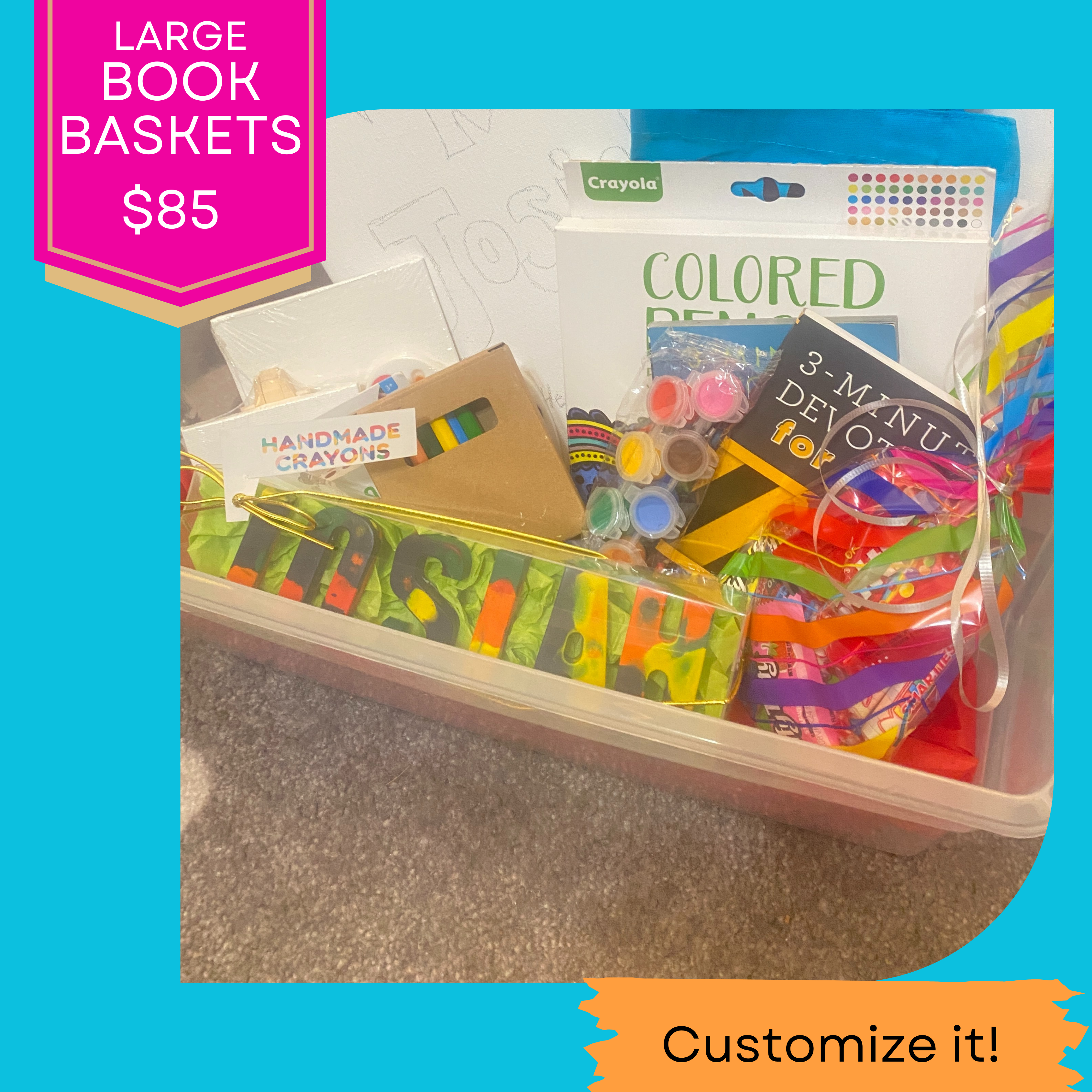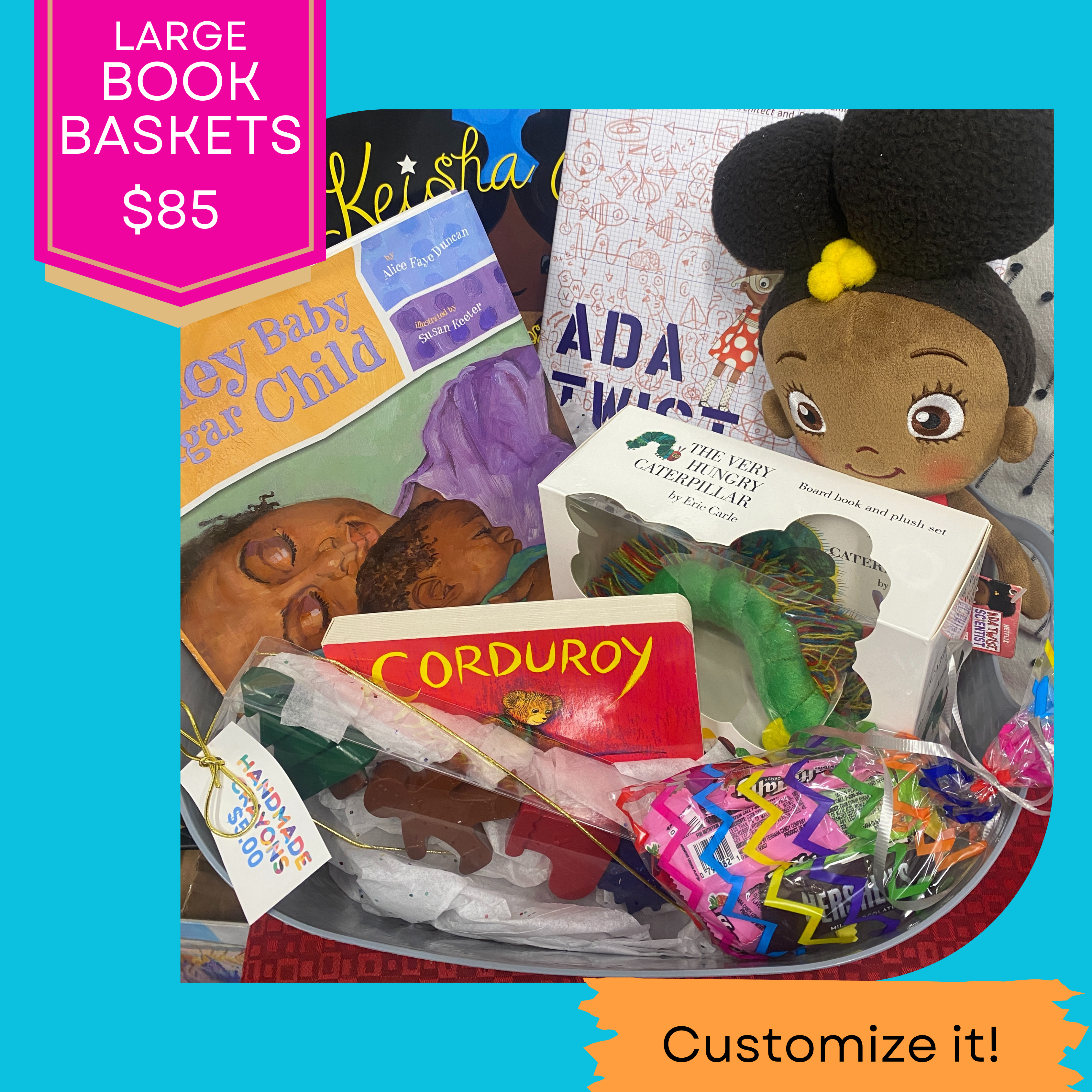 Perfect for birthdays, baby showers or other special occasions, our book baskets can be customized for your little reader. We only provide a limited amount of slots each month because of the customization. So, reserve your spot!