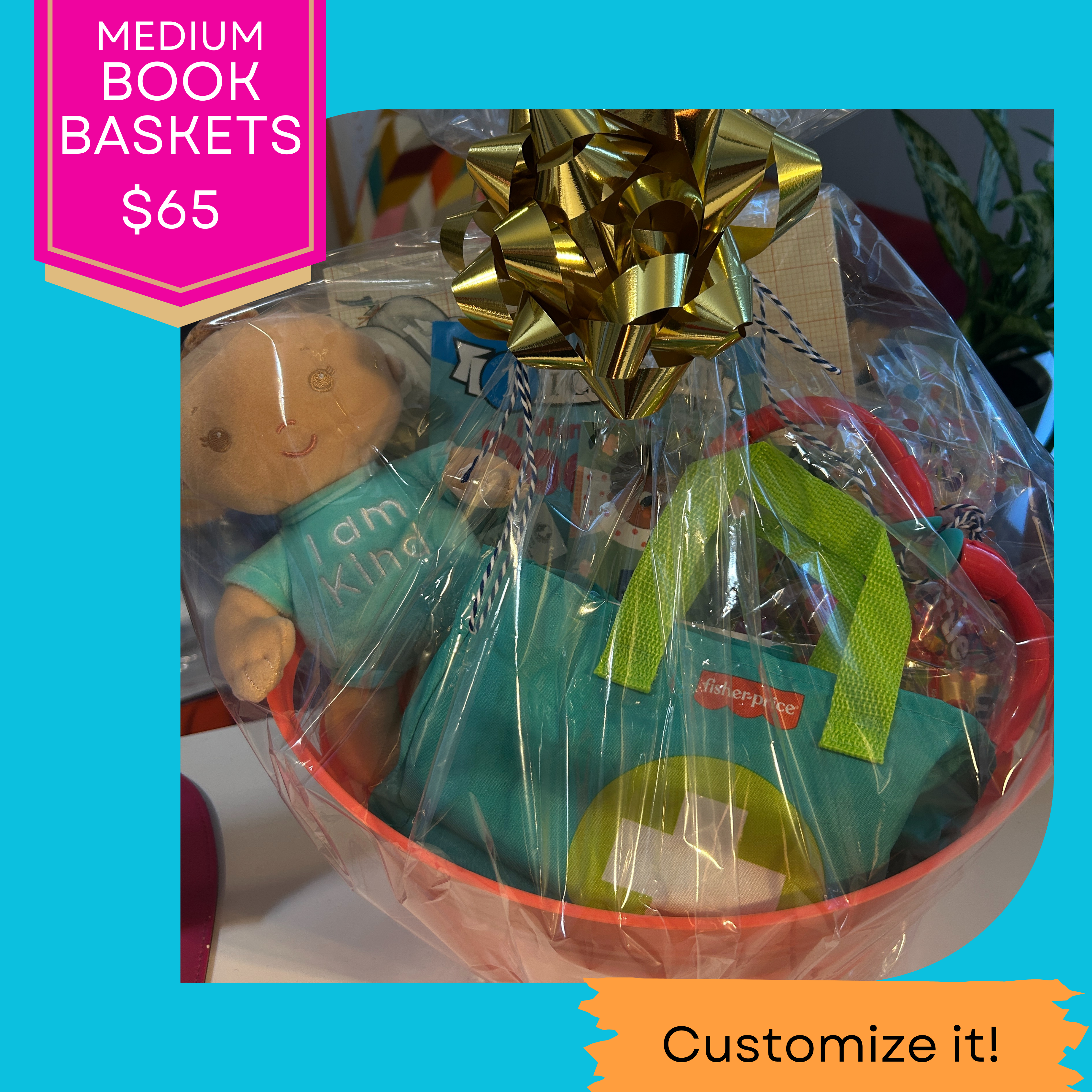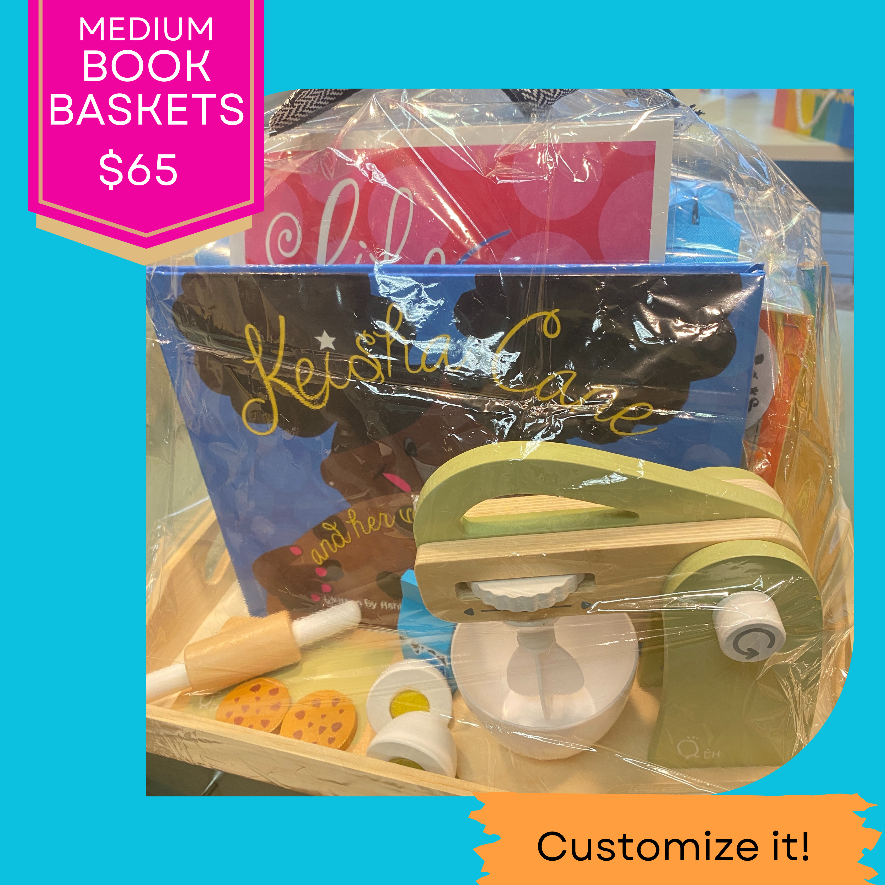 Perfect for birthdays, baby showers or other special occasions, our book baskets can be customized for your little reader. We only provide a limited amount of slots each month because of the customization. So, reserve your spot!