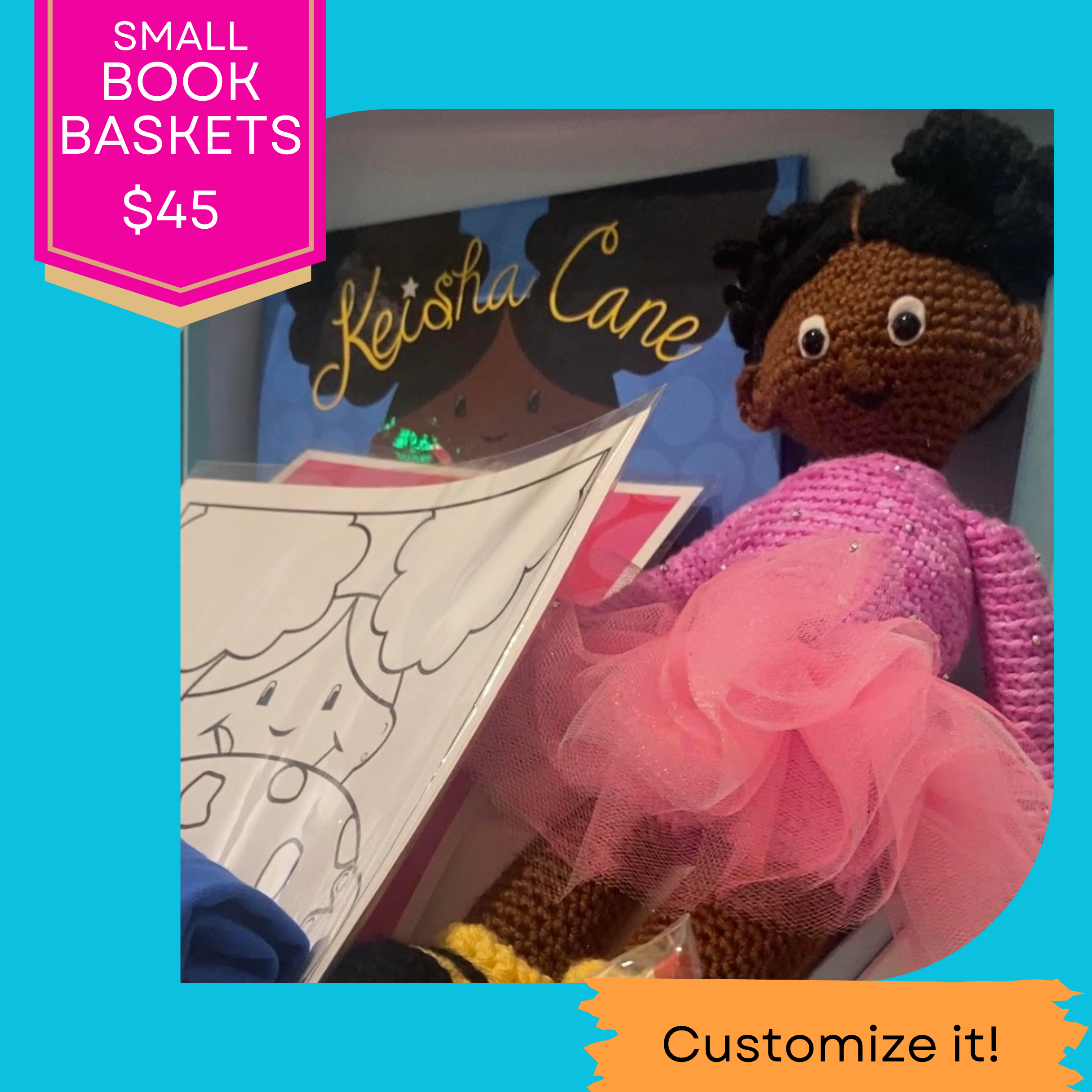 Perfect for birthdays, baby showers or other special occasions, our book baskets can be customized for your little reader. We only provide a limited amount of slots each month because of the customization. So, reserve your spot!